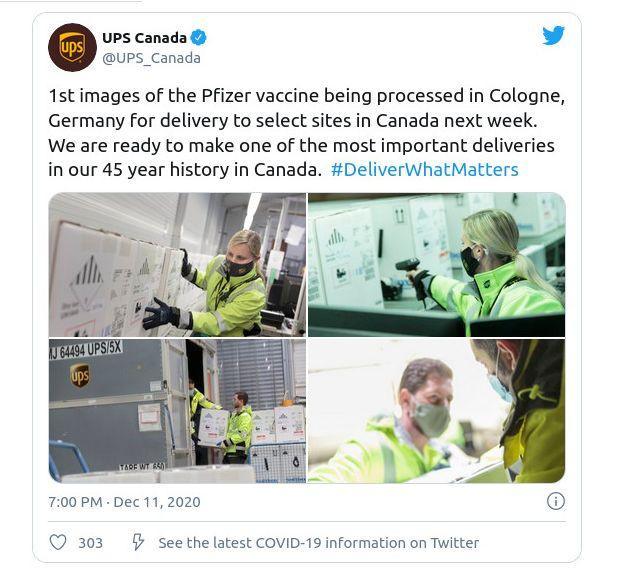 The Canadian media is so excited about it that they posted a tweet from USPS about the vaccine delivery with injections to begin December 15th in Ontario. Ontario is dubbing the day as “V-Day”. Premier Doug Ford also confirmed that the province will start administering the vaccines to health-care professionals on Tuesday, which has been dubbed “V-Day.”